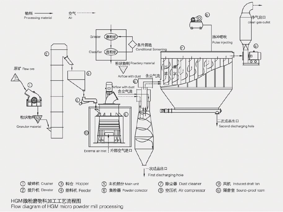 HGM系列超細磨粉機工作流程圖: